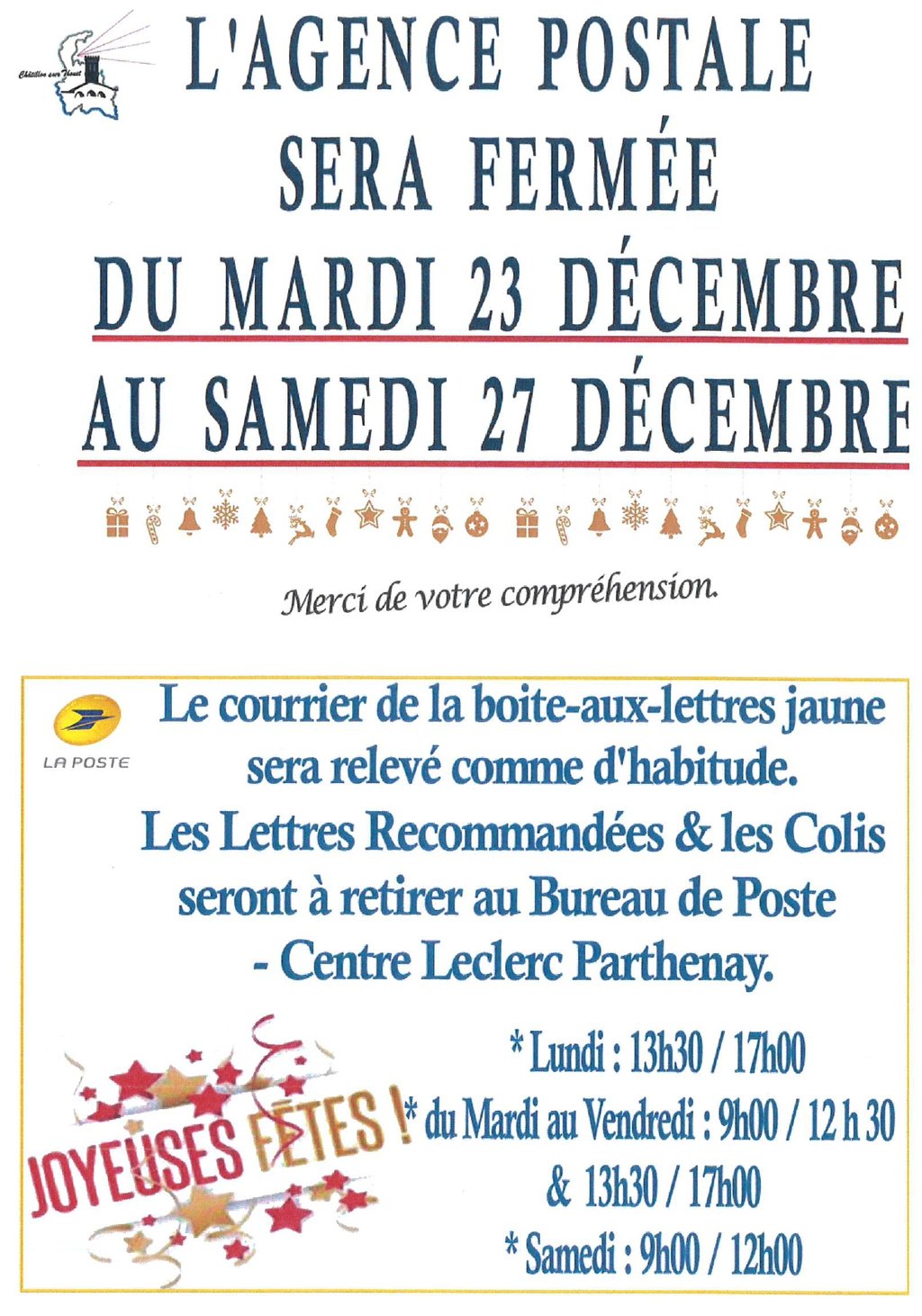 ✉️ AGENCE POSTALE FERMÉE DU 23 AU 27 DÉCEMBRE