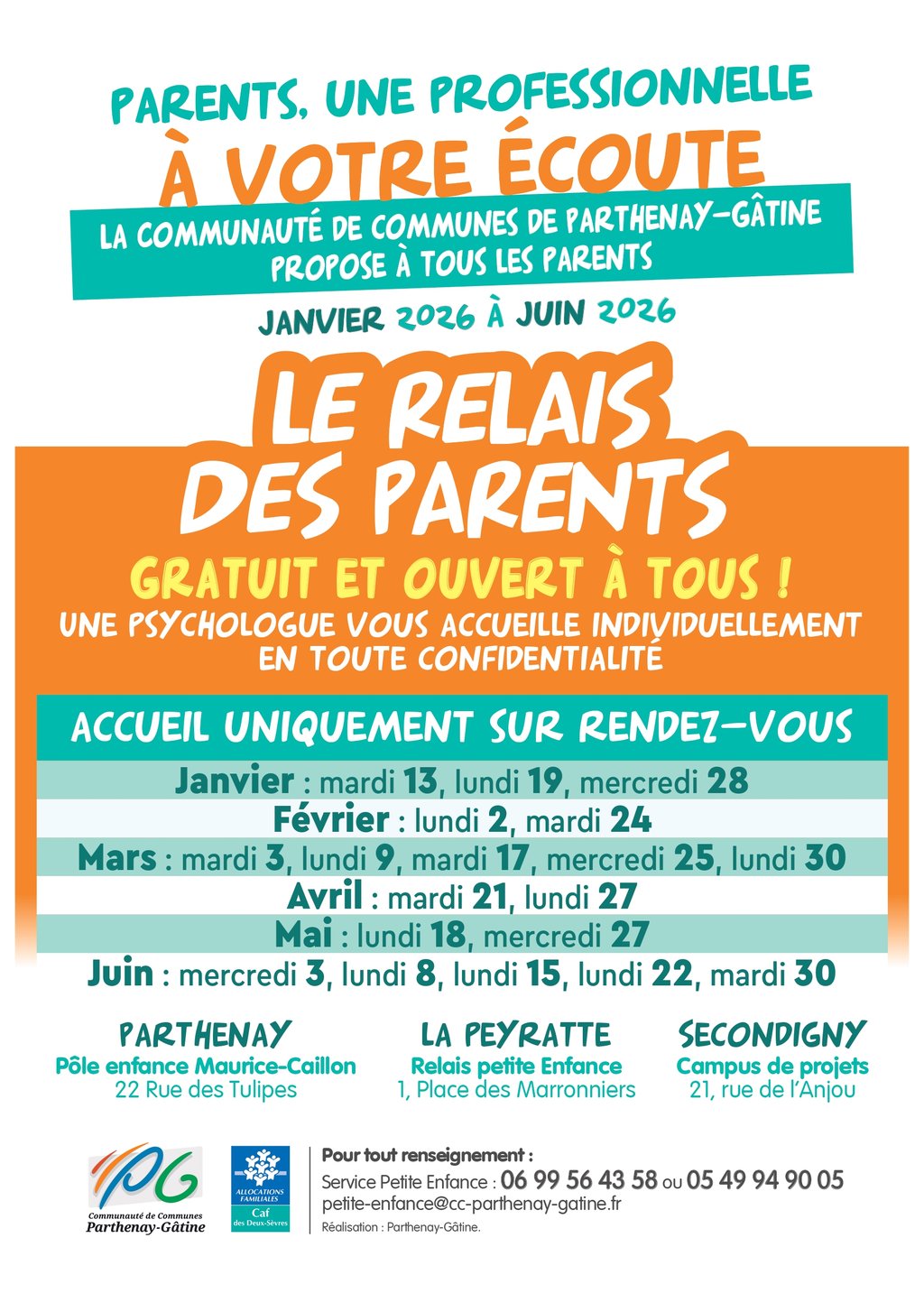 📞 Renseignements et prise de rendez-vous : Service Petite Enfance – Communauté de communes de Parthenay-Gâtine.