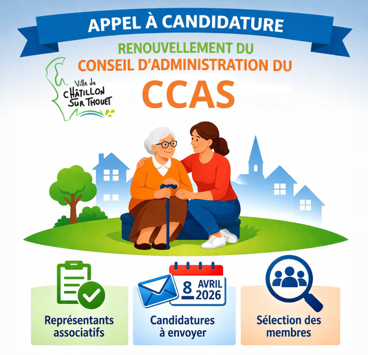 À l'issue des élections municipales 2026, il est procédé au renouvellement du Conseil d'administration du Centre Communal d'Action Sociale (CCAS) de Châtillon sur Thouet.