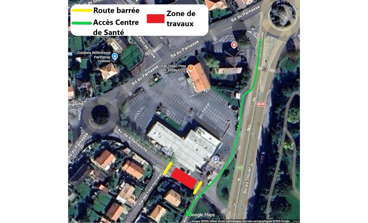 Du 21 au 28 avril 2026, l’accès au Centre de santé de Châtillon sur Thouet sera perturbé depuis l’avenue de Villefranche
