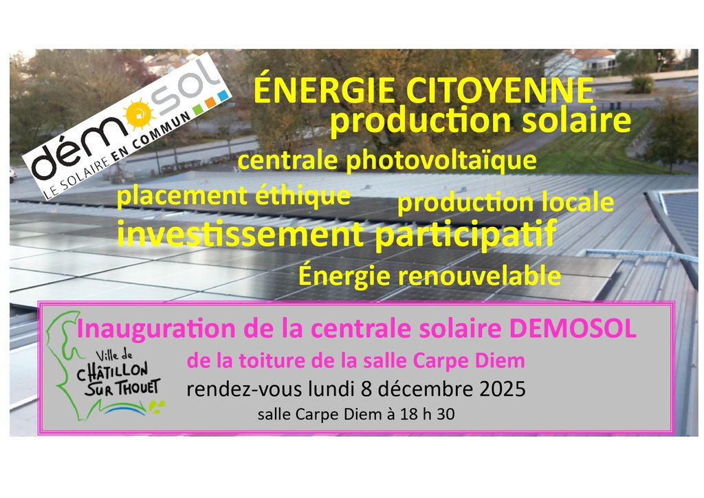 Participez à l’inauguration de la centrale solaire DEMOSOL, installée sur la toiture de la salle CARPE DIEM.