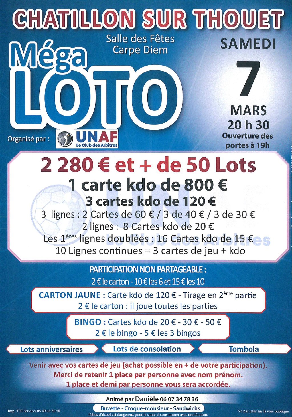 Les amateurs de loto, à vos agendas ! Un Méga Loto vous attend à la Salle CARPE DIEM le :
