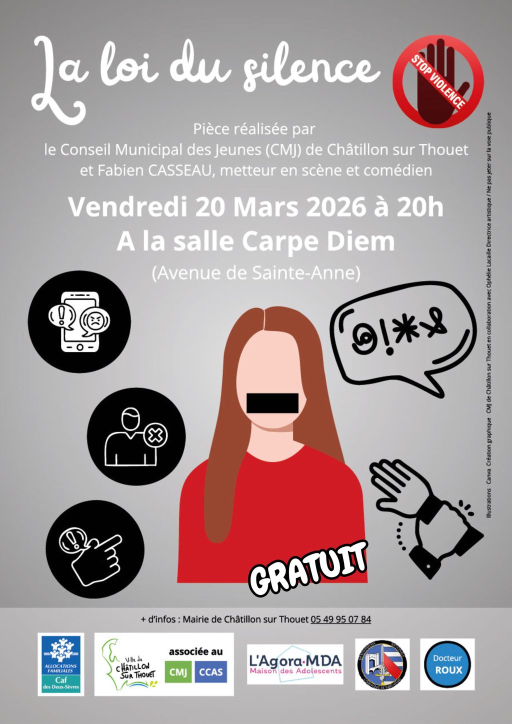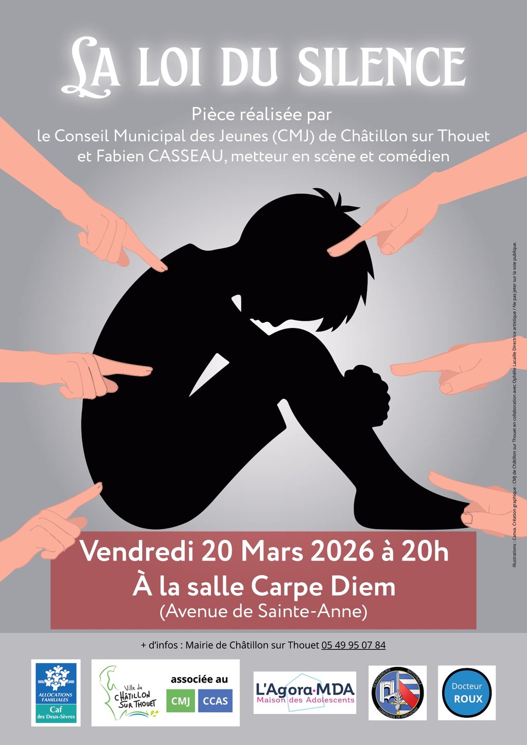 Le Conseil Municipal des Jeunes (CMJ) de Châtillon sur Thouet, accompagné de Fabien CASSEAU, metteur en scène et comédien, vous invite à une soirée engagée et essentielle autour de ce sujet.