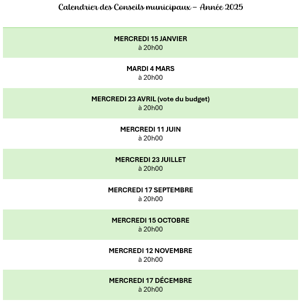🗓️ CALENDRIER CONSEILS MUNICIPAUX