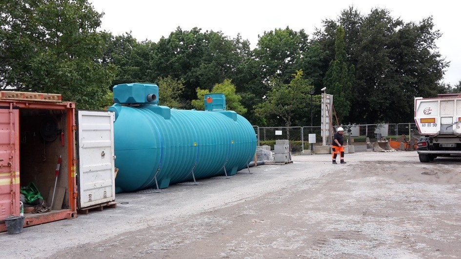 Cette cuve de 30 m³ pourra alimenter les chasses d'eau et permettre un arrosage sans utiliser l'eau potable :