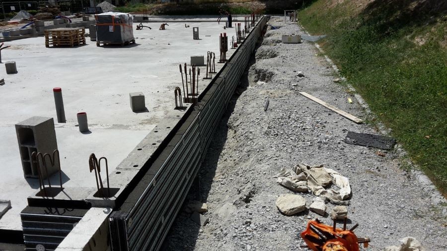 L'isolation extérieure est mise en place : une mousse de verre fabriquée à partir de verre recyclé assure une isolation performante :