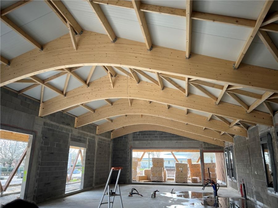 Une toiture en bacs acier vient recouvrir l'ensemble :