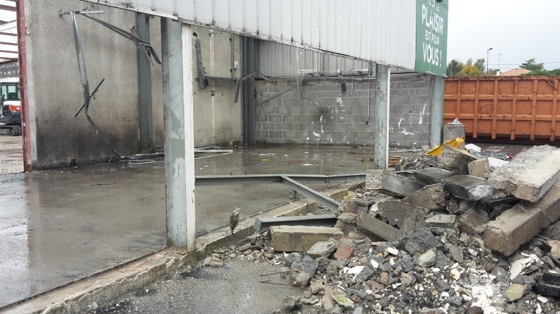 L'entreprise de démolition poursuit le dégagement du chantier, notamment certaines cloisons intérieures et les plafonds.