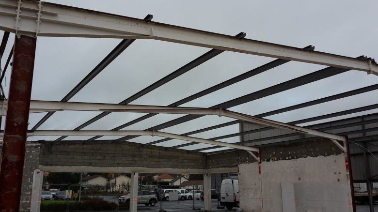 De nouveaux socles sont préparés pour accueillir des renforts de charpente. La nouvelle charpente est mise en place sur les zones déjà prêtes.