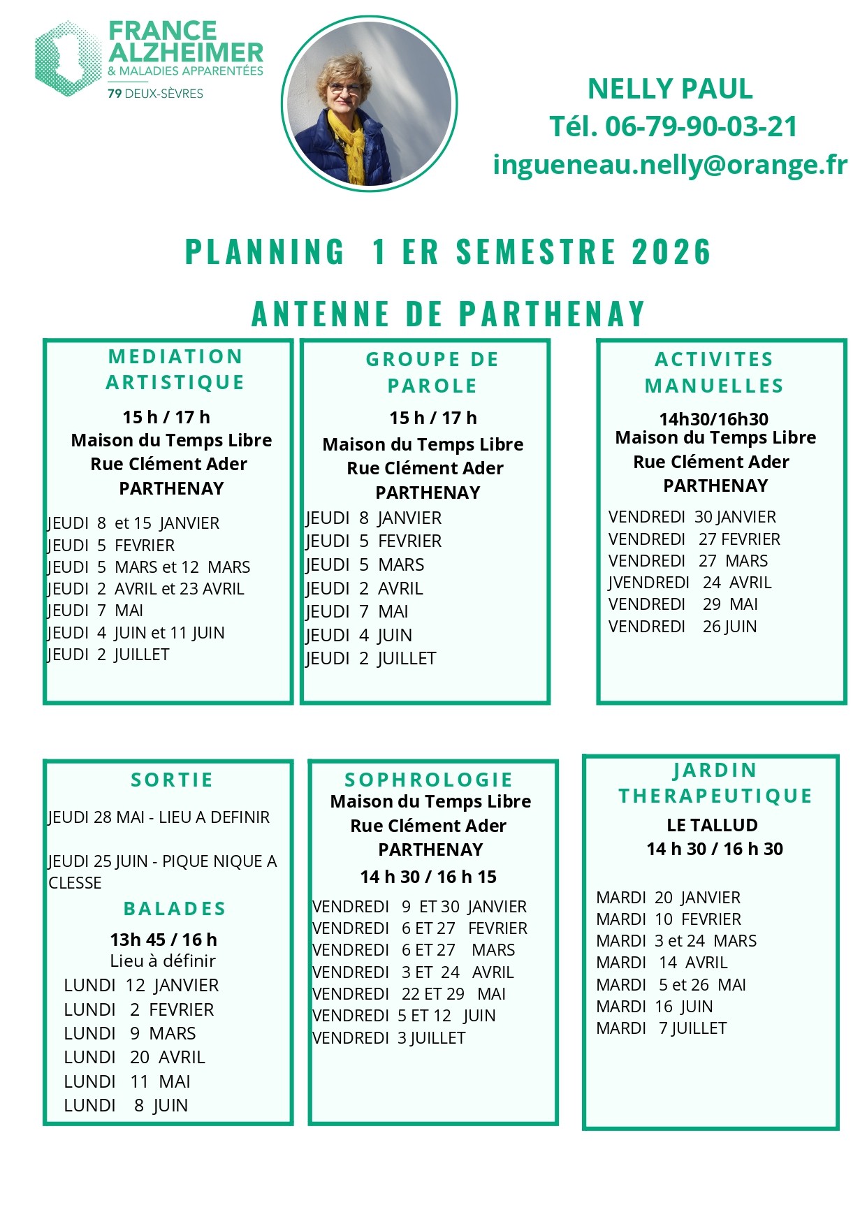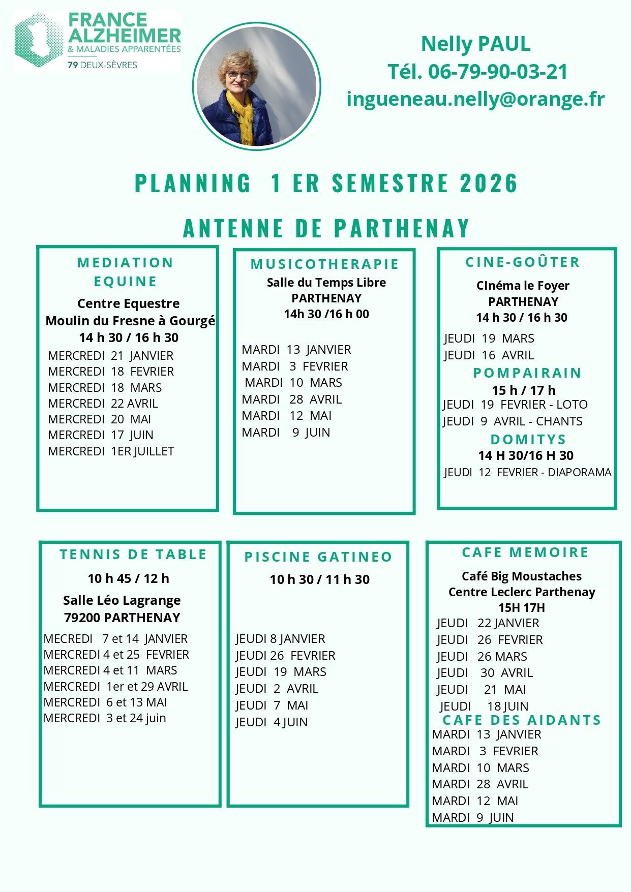 L'antenne de Parthenay propose plusieurs types d'activités qui permettent le maintien des capacités cognitives tout en renforçant les liens sociaux. Elles prennent forme dans un cadre de bien-être et d'écoute propice à l'amélioration de certains troubles, de la confiance en soi, voire même de la qualité de vie.